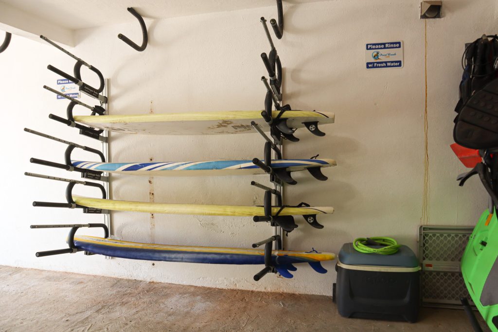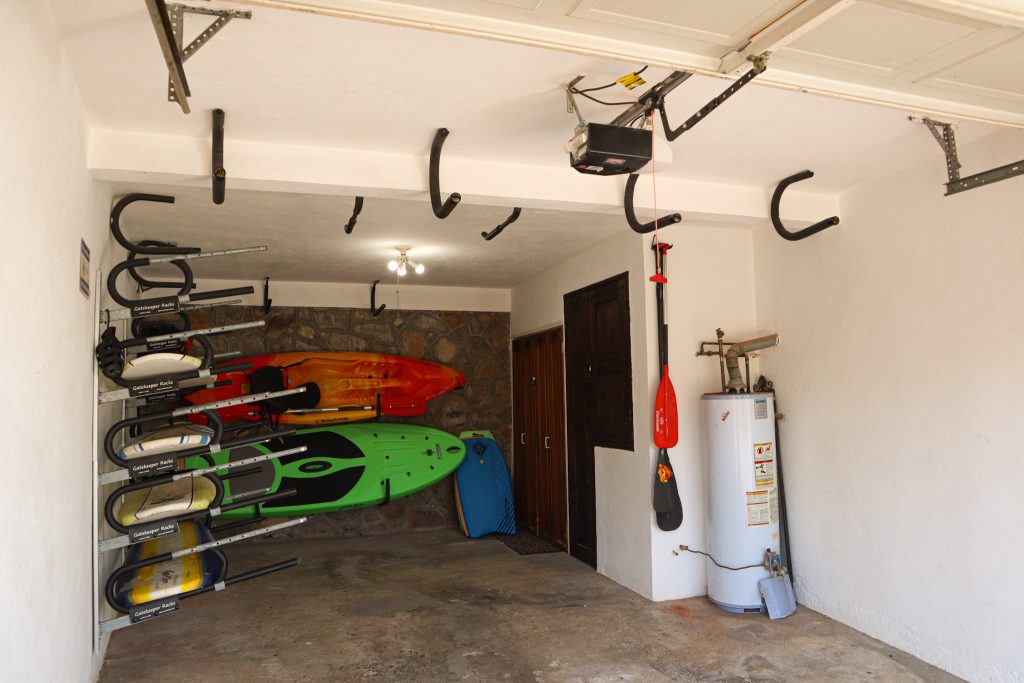 The real treasure? A garage stocked with surfboards, SUPs, kayaks, and body boards, plus extra wall racks for your own gear. With parking for three cars and high-speed Starlink WiFi, this home seamlessly blends adventure and modern convenience.